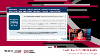 Dr Jennifer Lim reviews the personalized treatment algorithm in the YOSEMITE and RHINE trials for faricimab in DME, discussing visual and anatomic outcomes with the treat and extend strategy.